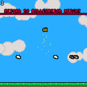 In this game, you play as a bee who must work tirelessly to pollinate the environment. Your objective is to collect the most flowers and pollinate as many times as you can without getting disrupted by those annoying pesky birds. You can collect the flowers when they spawn on the ground and then rise to the top of the screen to pollinate and add to your score. The number of birds will increase with your score as well.​