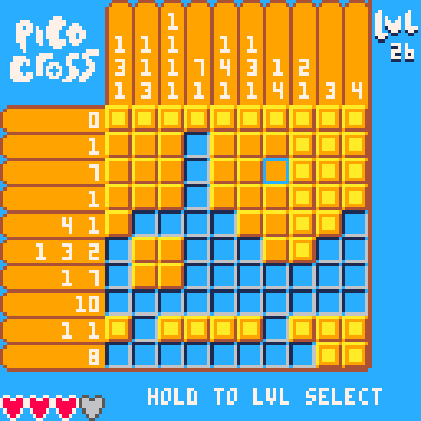 PicoCross by Joseph is a relaxing puzzle game made for PICO-8. This game describes a nonogram, which is a cell-based picture puzzle, where you must find all of the shaded cells. If you find all of the shaded cells, then you will reveal the hidden picture. Once you understand the rules, they are quite simple. …
